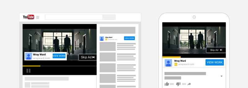Although video ads have historically included at least a small link encouraging users to visit the advertiser’s site, this new campaign subtype incorporates a prominent call-to-action (CTA) overlay over videos or just under them when viewed on mobile devices. So far, we’ve seen this overlay assist in vastly improving clicks through to a site and overall conversions.